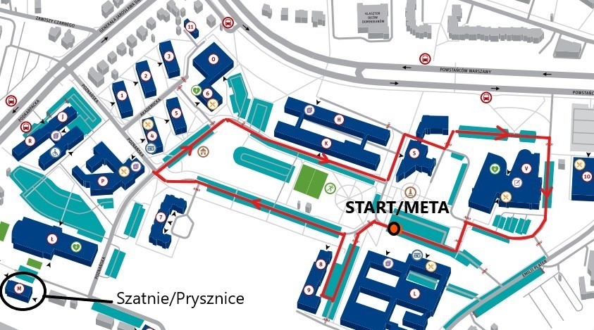 Bieg rozpocznie się o godzinie 10:00, ale już od godziny 8:30 będą wydawane pakiety startowe i biegacze będą się przygotowywać do biegu. Start i meta będą zlokalizowane przy budynku L, a trasa biegu będzie przebiegać drogami wewnętrznymi Politechniki – przy Inkubatorze, wokół amfiteatru, następnie drogą między budynkami Wydziału Chemicznego i Wydziału Zarządzania, wokół budynku Rektoratu, aby wrócić pod budynek Wydziału Budowy Maszyn
