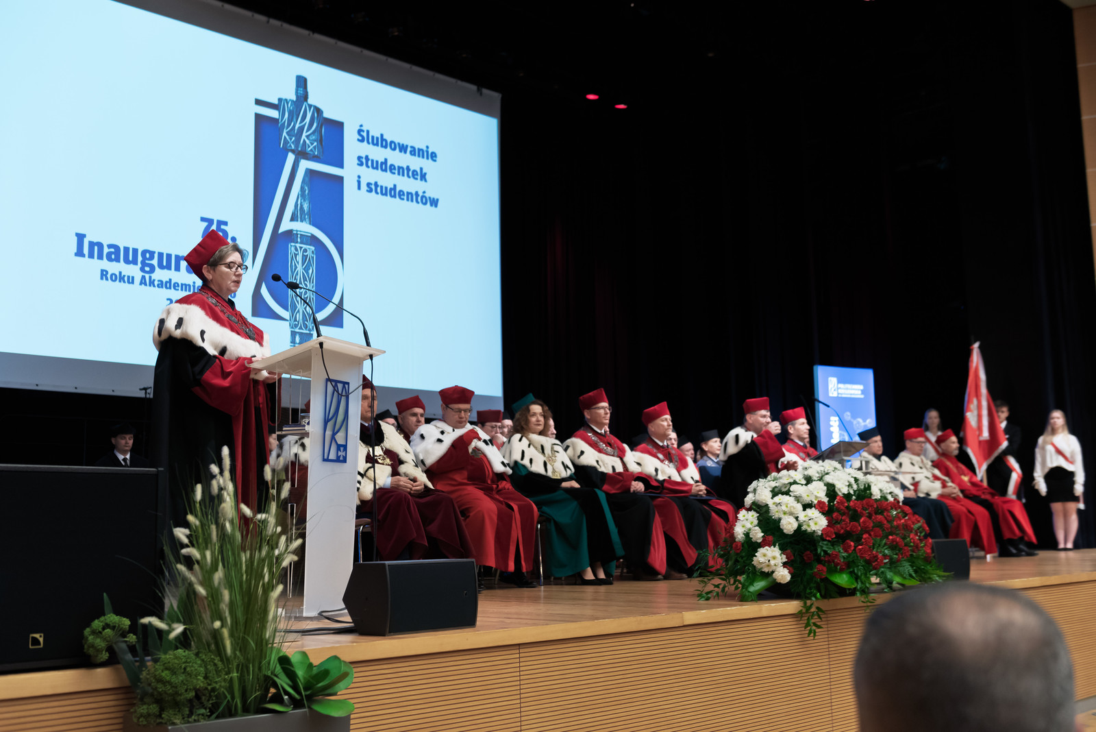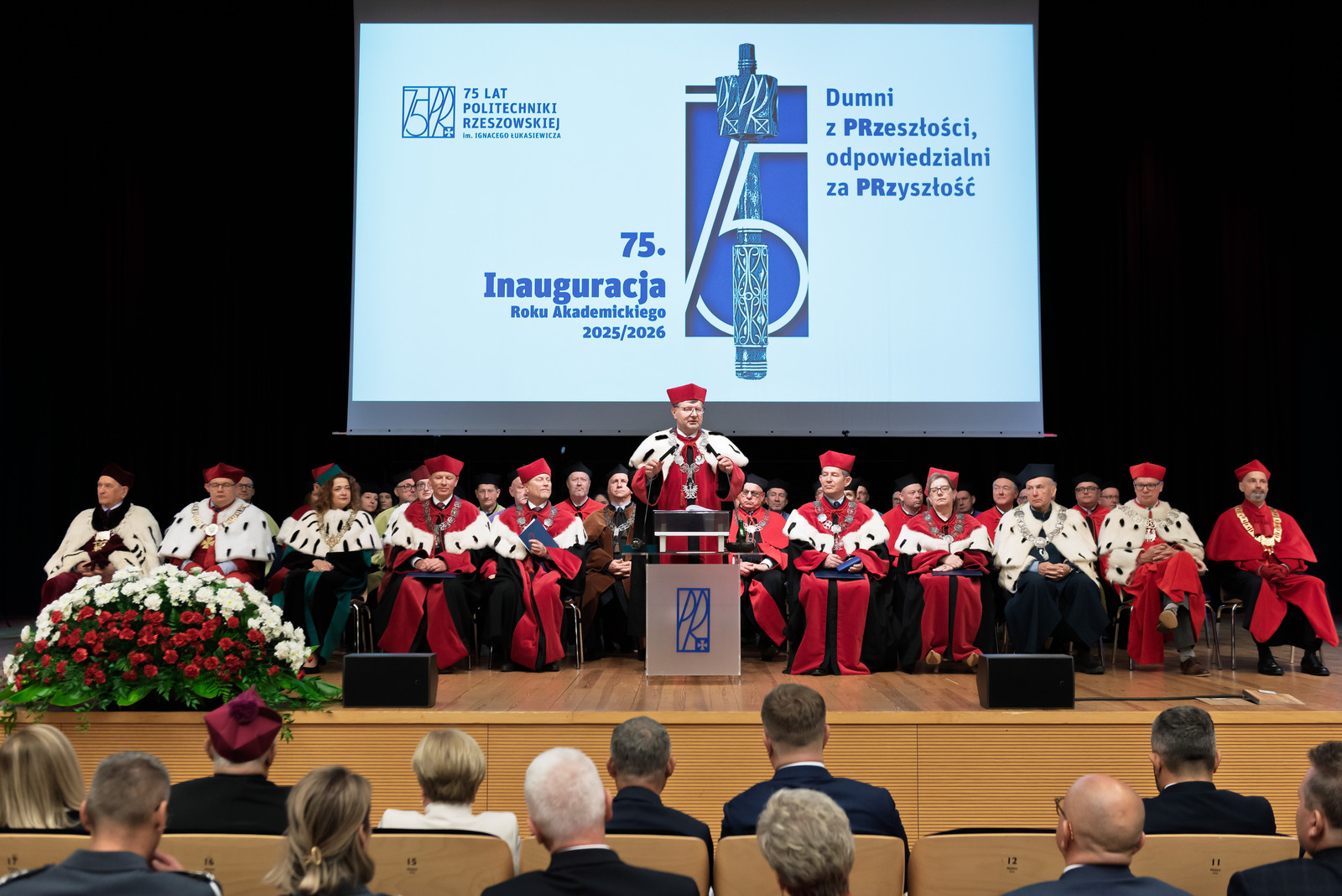 „Inauguracja roku akademickiego to nie tylko uroczystość, to także moment refleksji nad tym, czym jest uczelnia, kim jesteśmy jako jej członkowie i dokąd zmierzamy. W świecie pełnym niepewności uczelnia pozostaje jednym z ostatnich bastionów racjonalności, otwartości i dialogu. To nasza odpowiedzialność – chronić te wartości i przekazywać je kolejnym pokoleniom” – mówił rektor prof. Piotr Koszelnik podczas przemówienia inaugurującego jubileuszowy 75. rok akademicki na Politechnice Rzeszowskiej.