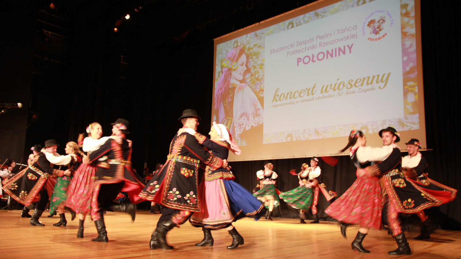 Studencki Zespół Pieśni i Tańca Politechniki Rzeszowskiej „POŁONINY" podczas koncertu wiosennego zaprezentował najpiękniejsze polskie pieśni i tańce dla ponad 400 widzów zgromadzonych w auli V-1 Politechniki Rzeszowskiej przy ul. Powstańców Warszawy 12.