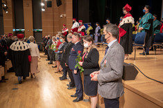 Głos zabrali również przewodniczący Parlamentu Studentów Rzeczypospolitej Polskiej Dominik Leżański oraz przewodniczący Samorządu Studenckiego naszej uczelni Michał Klimczyk, który w swoim wystąpieniu podkreślił m.in. zalety studiowania na naszej uczelni i zachęcał studentów pierwszego roku do działalności w organizacjach studenckich.