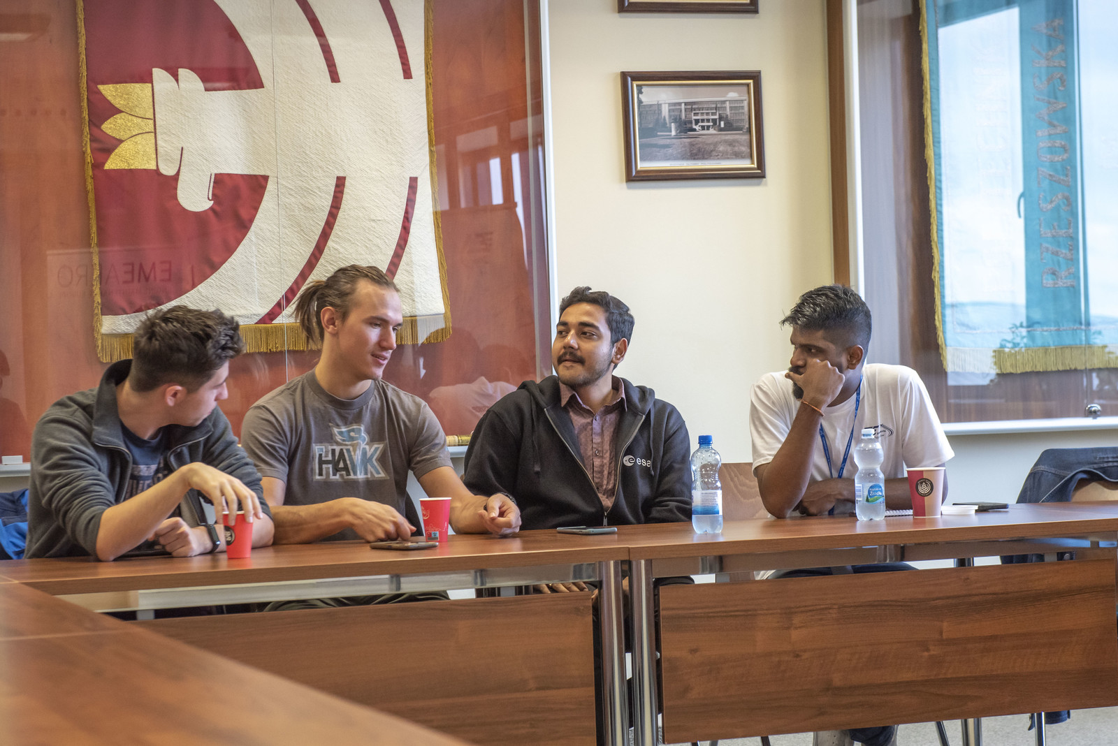 Studentów z Włoch, Grecji, Hiszpanii i Rumuni przywitali przedstawiciele władz uczelni: prorektor ds. rozwoju i współpracy z otoczeniem prof. dr hab. inż. Jarosław Sęp i prorektor ds. studenckich prof. dr hab. Grzegorz Ostasz oraz dziekan Wydziału Budowy Maszyn i Lotnictwa dr hab. inż. Adam Marciniec, prof. PRz, dyrektor Ośrodka Kształcenia Lotniczego dr inż. Arkadiusz Rzucidło, kierownik Katedry Awioniki i Sterowania dr hab. inż. Tomasz Rogalski, prof. PRz oraz opiekun KN EUROAVIA Rzeszów dr inż. Grzegorz Drupka.