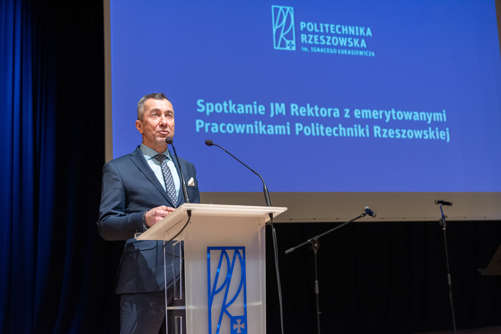 „Cieszę się, że tak licznie przybyli Państwo na to spotkanie i że mogę Państwa przywitać w imieniu władz w murach naszej Politechniki Rzeszowskiej. Jeden ze znanych Francuzów Napoleon Bonaparte, nazwisko pojawia się w naszym hymnie narodowym, stwierdził, że: „Cierpliwość, wytrwałość i pot tworzą niepokonaną kombinację sukcesu”. Uważam, że warto uzupełnić tę dewizę: „Cierpliwość, wytrwałość, pot oraz umiejętność czerpania z doświadczenia poprzedników to recepta na sukces” – powiedział prof. Grzegorz Ostasz. „Bardzo serdecznie dziękuję Państwu za wiele lat pracy, macie Państwo ogromne doświadczenie, z którego chętnie skorzystamy”.